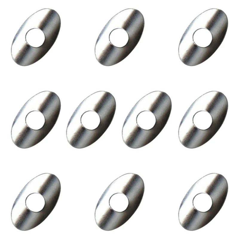 Kit de 10 rondelles ovales pour écrous de rayons 13G (rayons de Ø2.3mm) ou 14G (rayons de Ø2mm) ;
