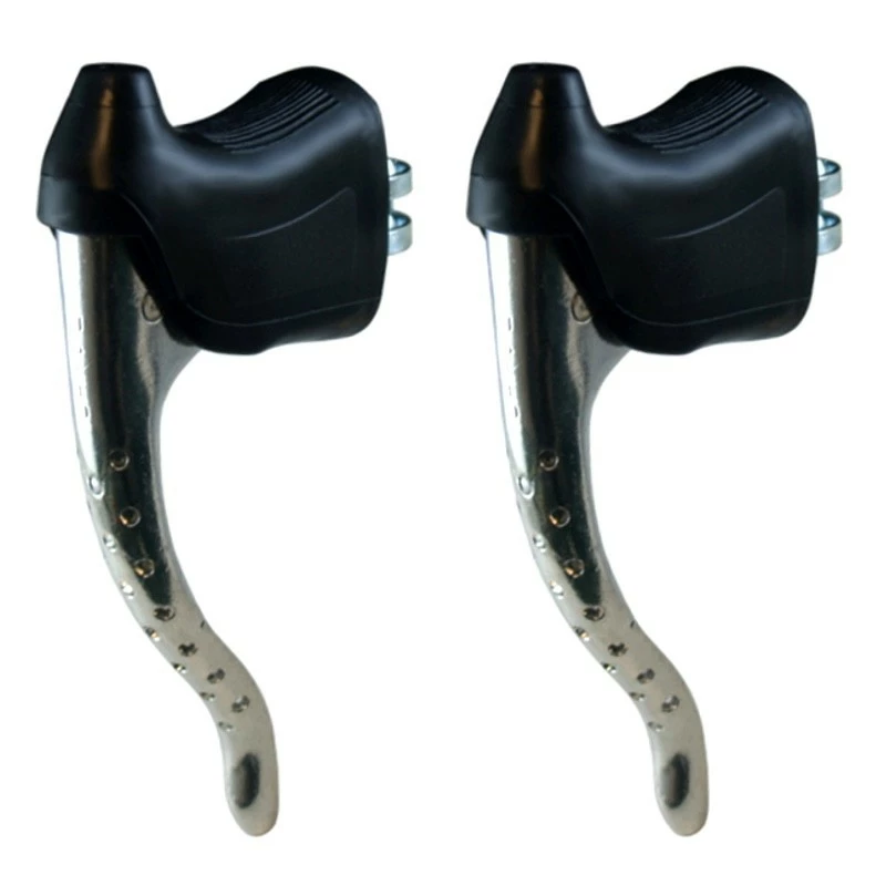 Paire de leviers de frein aluminium course perforés avec reposes main ;